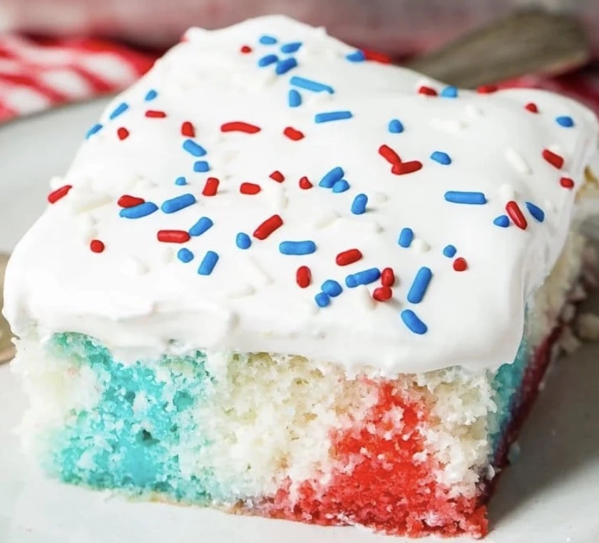 This festive cake is great for summertime holidays. It's a light, cool, dessert that's easy to make and will surely be a hit at any gathering.
