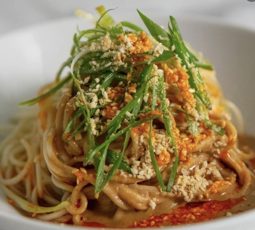 You don't need to go to Chinatown to enjoy this dish or even order takeout. The sesame noodles are flavorful, with fermented tofu, soy sauce, toasted sesame oil, and finished with chile oil, toasted sesame seeds and scallions.