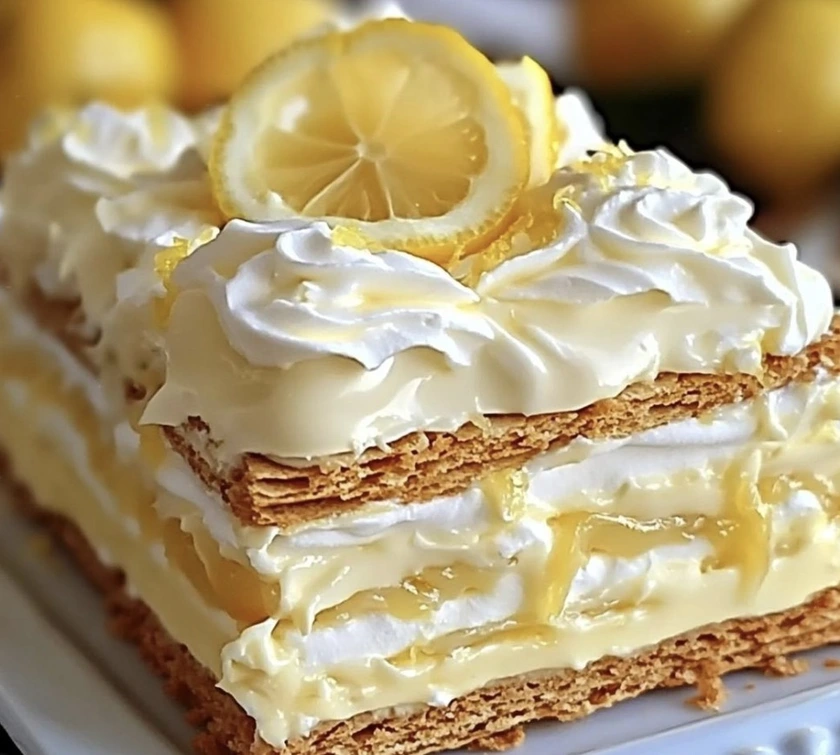 Make this easy no-bake dessert for your next party or potluck. It's delicious with graham crackers, lemon pudding, Cool Whip and lemon frosting. It's a lemon lovers dream dessert.