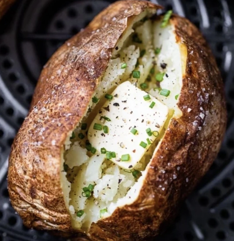These baked potatoes taste like they came straight from the restaurant. They are fluffy on the inside and crispy and salted on the outside. Making them in your air flyer will be your new favorite way to make them.