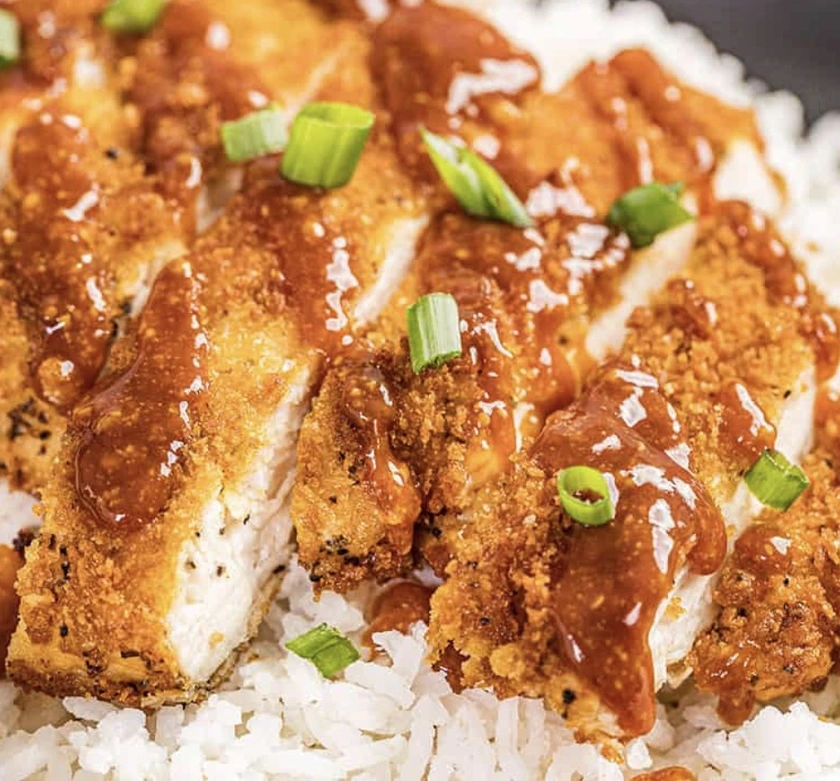 Chicken Katsu is an American-Japanese recipe. The chicken is tender and juicy on the inside and crispy on the outside and then drizzled with a yummy sauce.