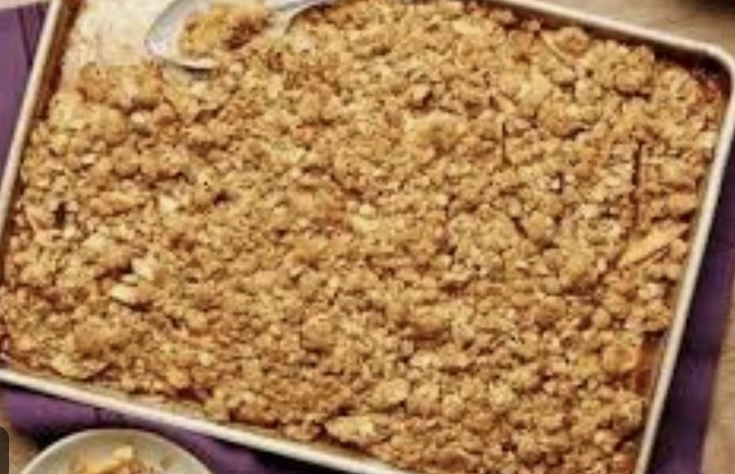 Apple crumble is delicious and simple to make on a sheet pan. It has plenty of crumbs on top, sliced baking apples, rolled oats and sweet flavor of brown sugar and cinnamon.