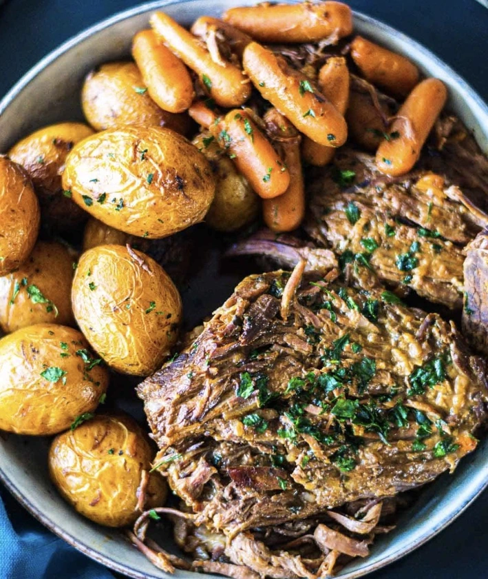 This slow cooker pot roast is tender, full of deliciousness and simple to prepare. It's an all in one meal with mouthwatering gravy that everyone will enjoy.