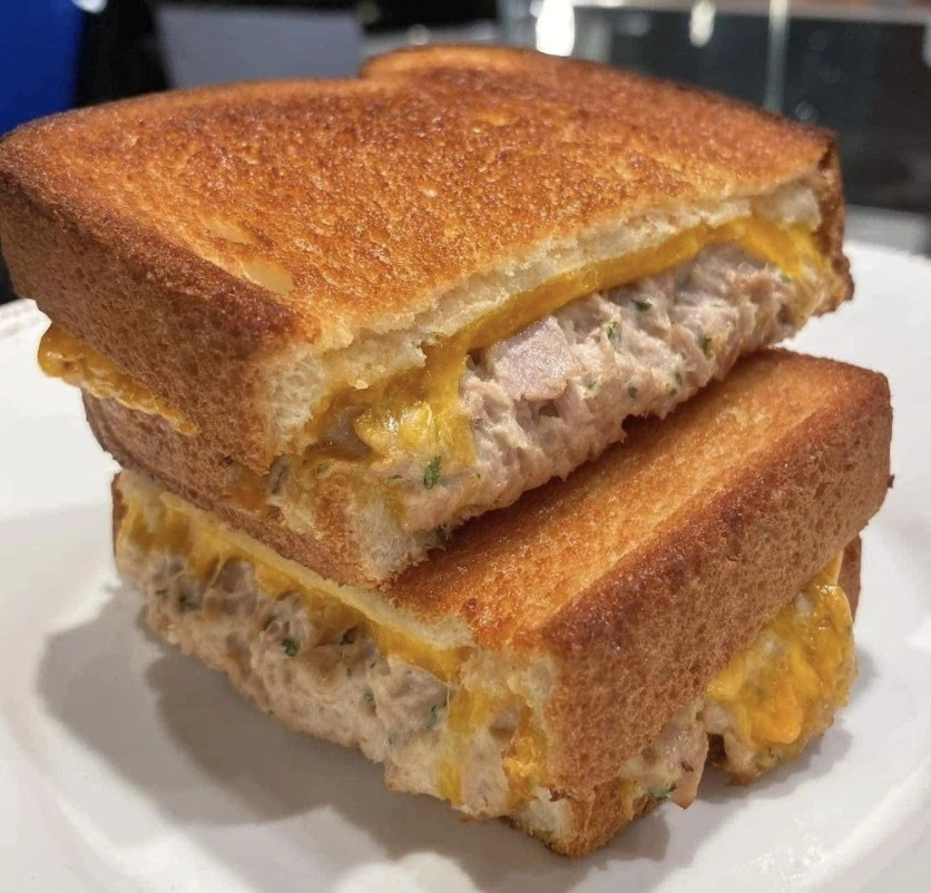 Add half of the tuna mixture to 1 slice of bread on the unbuttered side; add 1 slice of cheese; place 1 slice of bread on top, buttered side up.