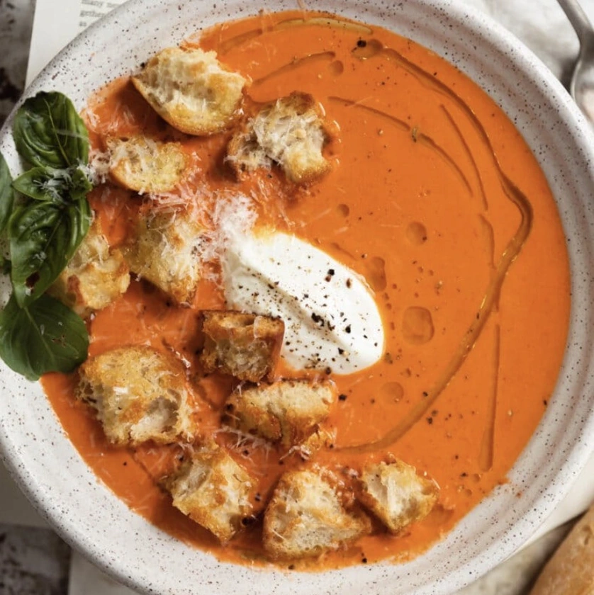 When it's tomato season, you'll want to make this delicious homemade tomato soup. It's so much better and healthier than canned soup. It's made with roasted tomatoes, onion and garlic and then with vegetable broth and fresh basil. Serve alone or with your