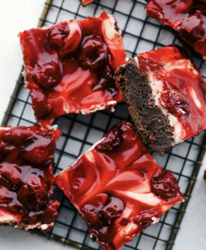 These delicious brownies make any occasion special and would be perfect for Valentine's Day. They're fudgy, rich and creamy with a cheesecake topping and cherry pie filling swirled like marble on top.
