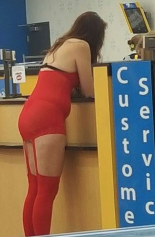 I think this lady is cashing in a bucket load of one dollar bills at the Walmart bank wearing her work clothes. I wouldn't want to be the teller handling those bills.