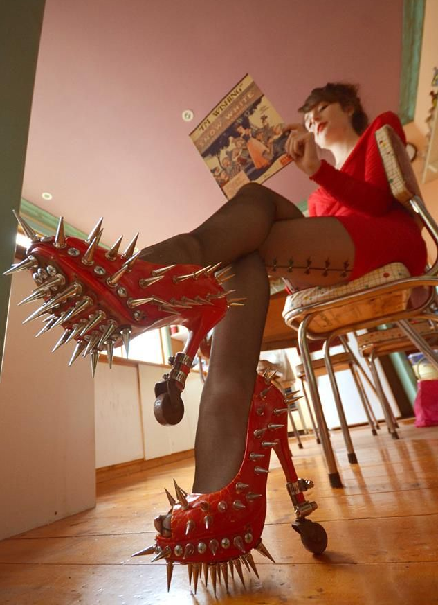 Red high heels shoes with spikes, whatever you do don't tell her that you are breaking up with her when she is wearing this hot red high heels shoes.