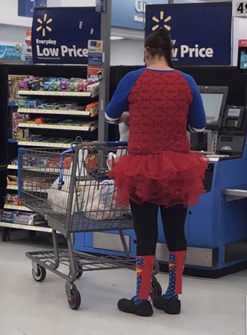 Walmart shoppers are definitely the most patriotic and the most fashionable. That tutu definitely goes great with the colors of our flag!