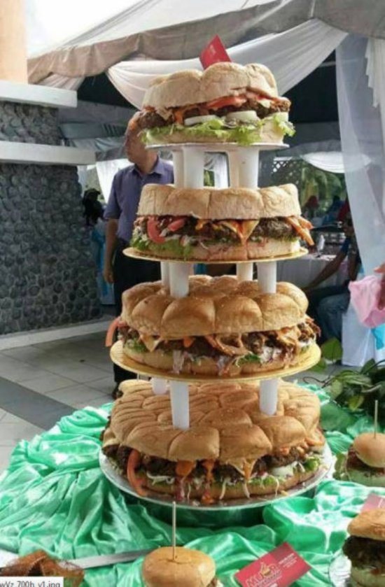 Redneck Wedding Cake - Hamburger Layer Cake Fattening Heart Attack - WTF