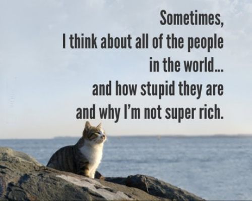 "Sometimes, I think about all of the people in the world.. and how stupid they are and why I'm not super rich."