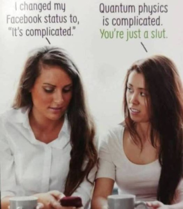 Quantum physics is complicated. You're just too easy. Facebook should consider a new label for this status.