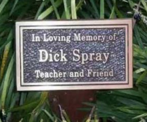 In loving memory of Dick Spray teacher and friend. With a name like that how could you not miss him? Very sad.