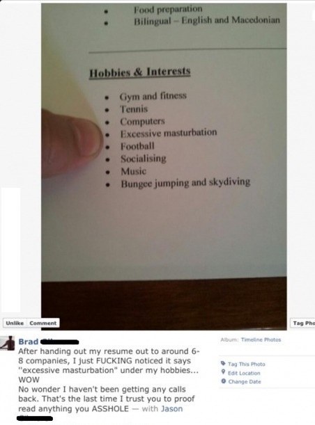 You're probably the first person to boast about your "great skills" but nothing like a friend to make sure you're not hired by tweaking your resume to put this excessive information out.