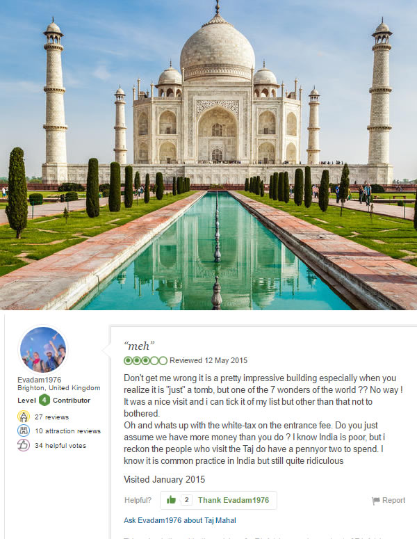 Ridiculous Trip Reviews: Taj Mahal is "Meh"