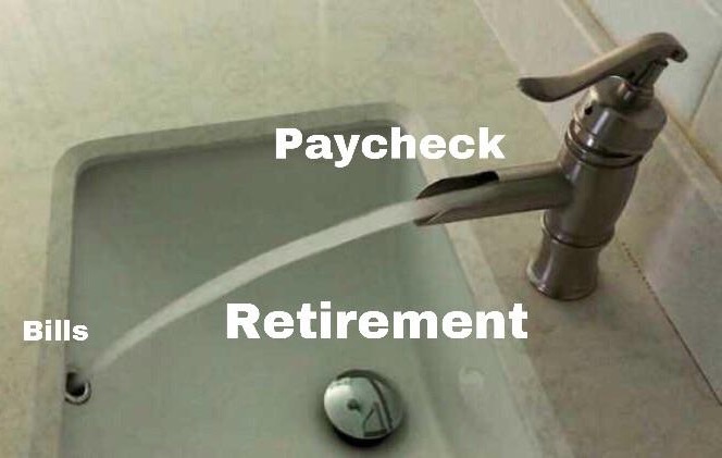 There goes my paycheck right down the drain. I'll never save enough for retirement.