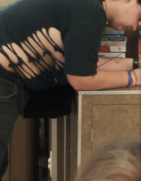 The best way to stay cool in the summer is to have a shirt ripped in the middle for the air to pas through it