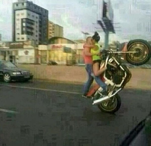 Romance Is Not Dead - Couple Makes Out on Dangerous Motorcycle Wheelie WTF
