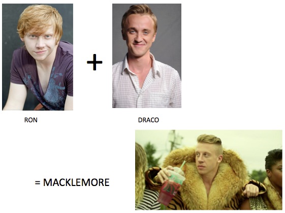 The characters of Harry Potter make up Thrift Shop rapper Macklemore aka Ben Haggerty! Tom Felton and Rupert Grint must have merged genes to make this Doppelgänger