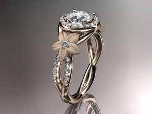 This would make a great engagement ring. The twisted shanks accented by diamonds and the floral design on the side add to the femininity of this ring.