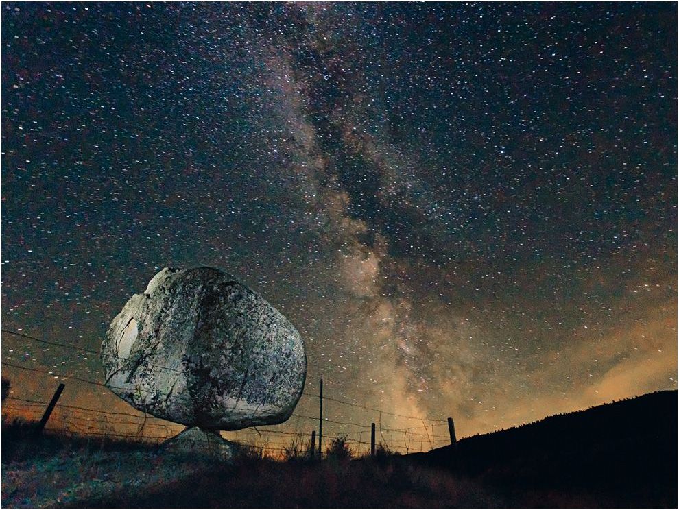 Looking as if it fell from the sky, a 40-ton erratic stands on the Colville Indian Reservation in Washington State. Such boulders are sometimes called rubbing stones because bison scratched up against them.