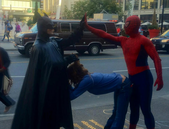 Saw Batman and Spider-man tag teaming a girl, now thats call team work