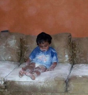 Say Hello To My Little Friend Scarface - Baby Falls Asleep on Baby Powder Couch