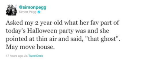 Imagine if you were Simon Pegg. His kid can see ghosts. That's effin' scary.