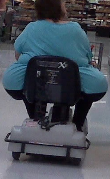 This is the way to roll around Walmart. Not only do you ride in style but you do it in baby blue. The only thing missing is a butt crack.