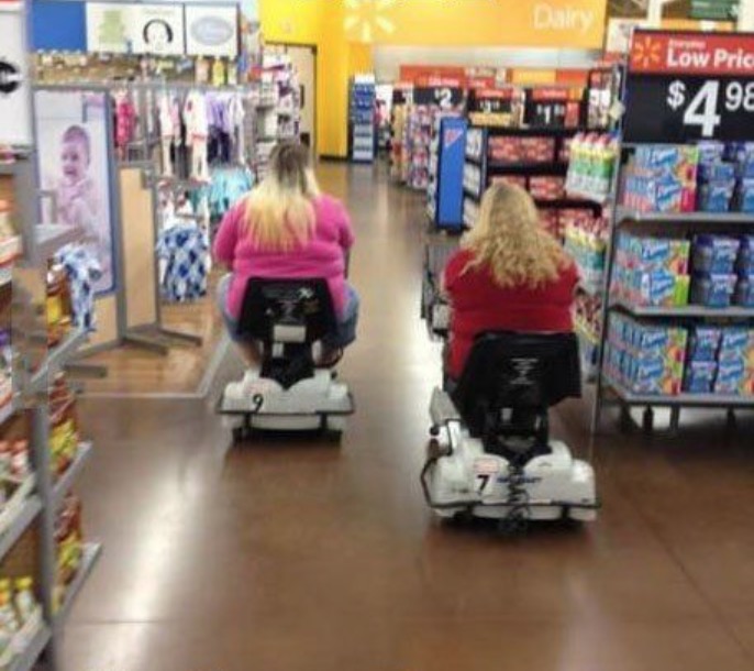 The scooter sisters decided to do Walmart. Look out low prices and huge savings! They are going to rip up the aisles and tear them down for savings.