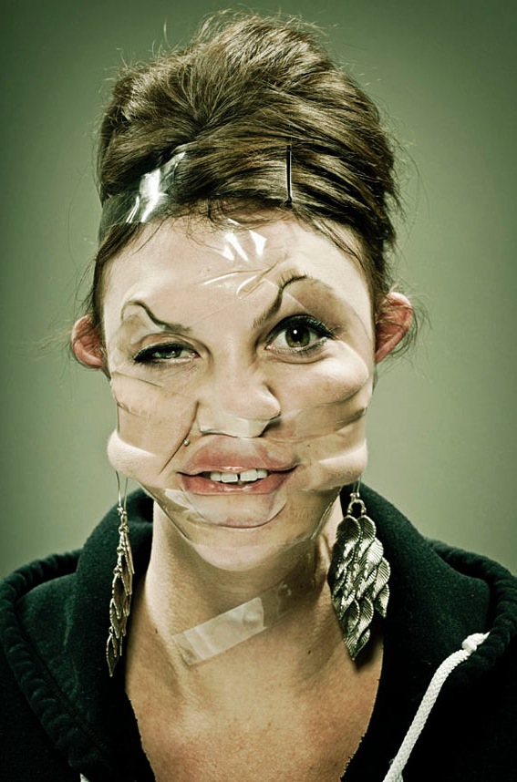 Here is another girl that has scotch taped her face. Boy she looks different. She really looks like the bridge of frankenstein. Nice earrings though.