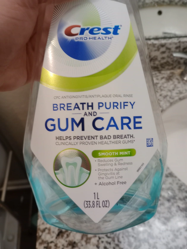 Second bottle almost finished. Worthy buy! Crest pro health breath purify and gum care oral rinse 😊