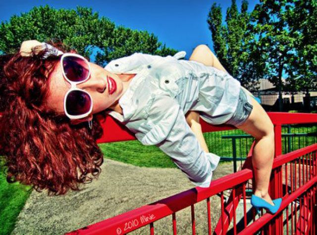 This is an awkward moment when you see your girlfriend taking a selfy on top of a fence not on top of you.