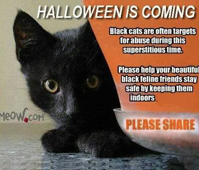 Don't let your pet black cat fall prey to pranks Halloween ....day or night. Please take care of them, they depend on you ...