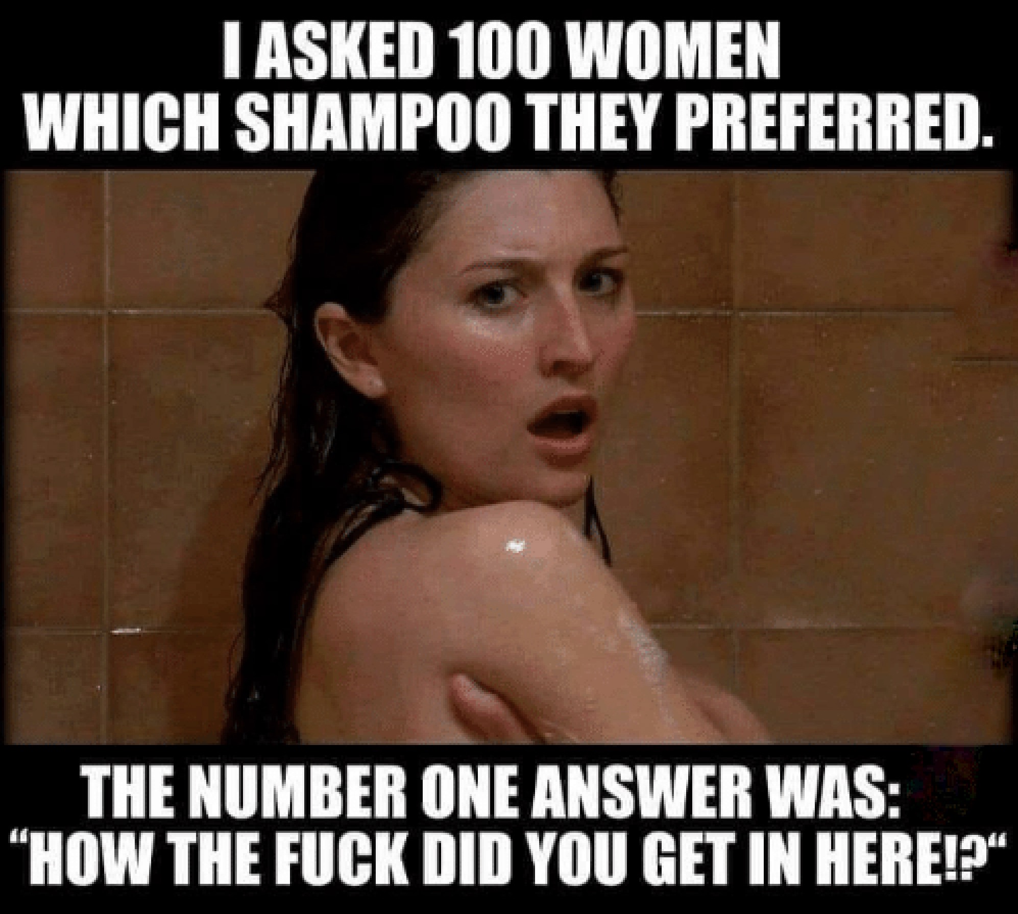 I asked 100 women which shampoo they preferred. The number one answer was: how the heck did you get in here?
