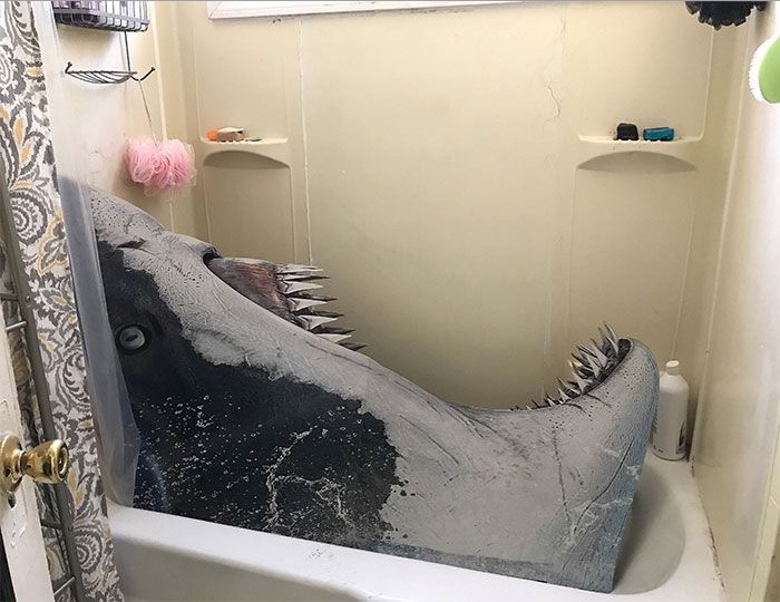 This is what I've been afraid of all along. You know when people flush things down the toilet? This shark probably came up through the drain. Jaws!