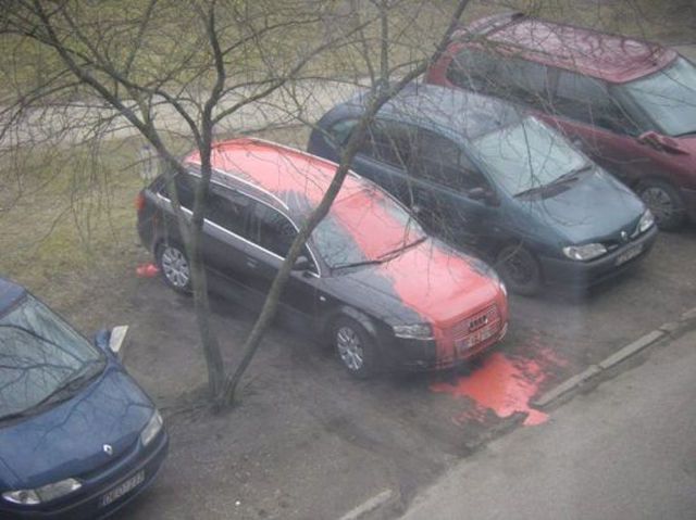 im guessing she didnt take the break up well. well look at the bright side. now i got a racing stripe on my car haha