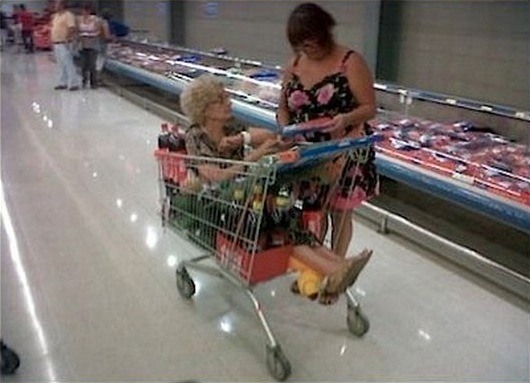 She Looks A Little Too Old to be Sitting in a Walmart Shopping Cart