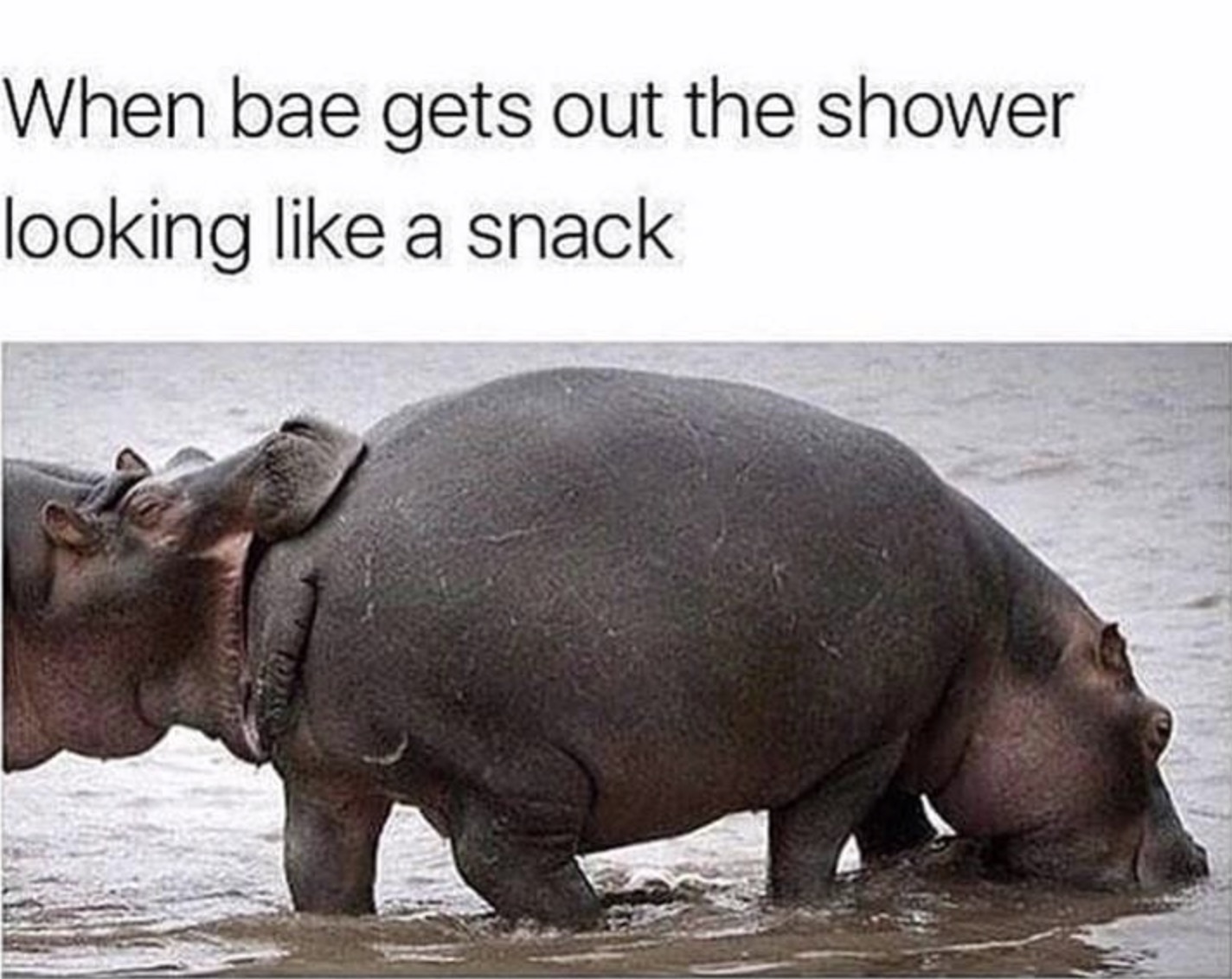 When bae gets out of the shower looking like a snack. My husband is a hungry hippo.