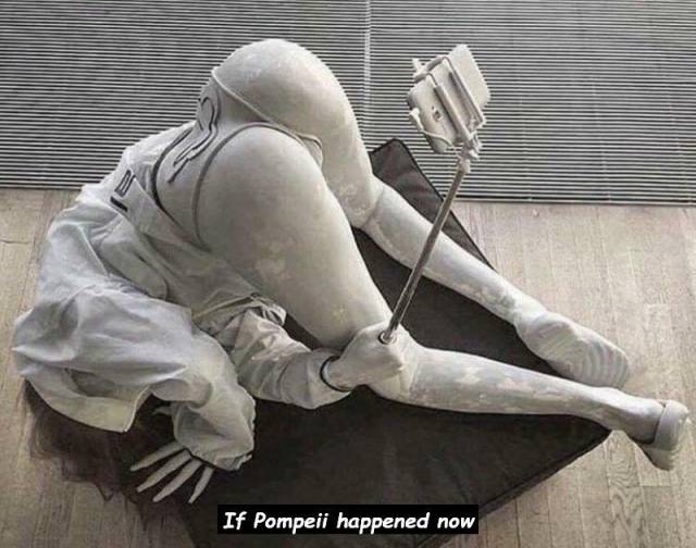 She turned to stone and then took a selfie to show everybody. Even a statue can't hold back on a selfie. Pompeii wouldn't have been the same with iPhones.