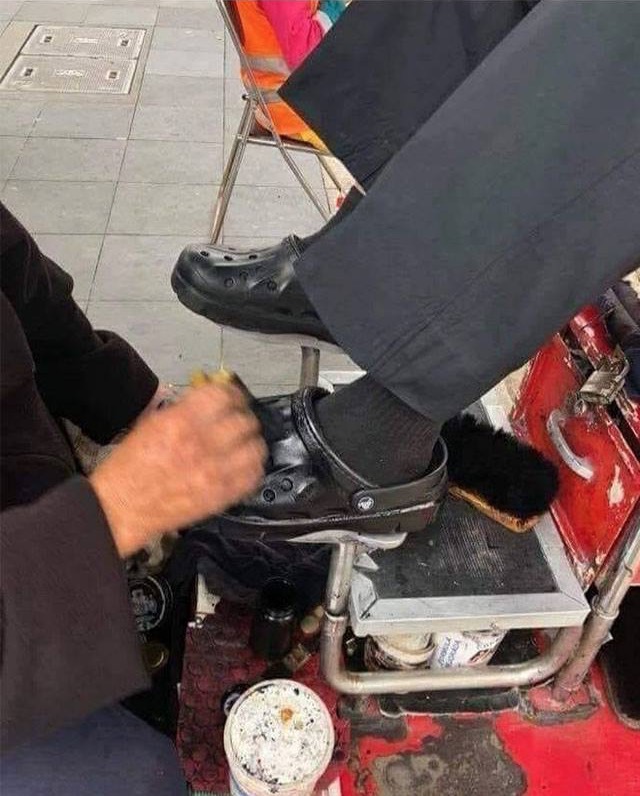 Time for a shoe shine. I want my black crocs to look shiny.