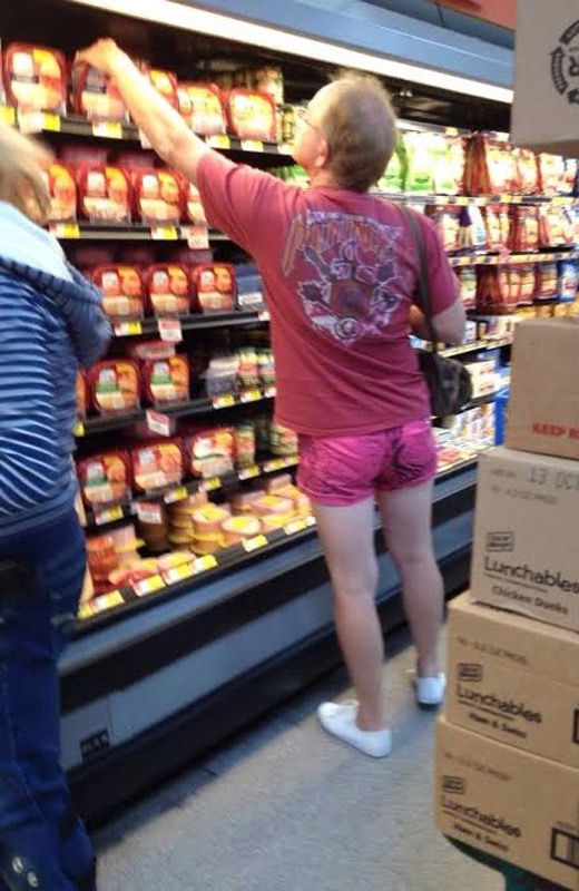 I think this guy found his calling. Hot pink shorts and a pocketbook really make for a pleasant day at Walmart. Now all he needs is some hair.