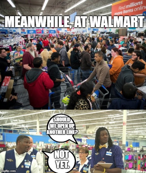 Meanwhile at Walmart: Should we open up another line? Not yet.