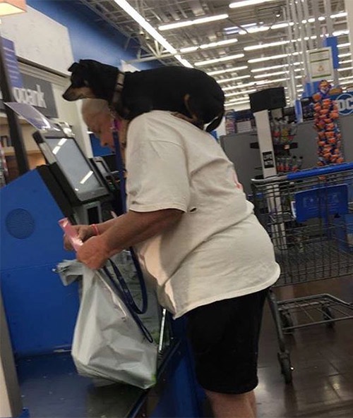 Nothing like some shoulder support at Walmart. Hopefully the dog won't poop on that shoulder!