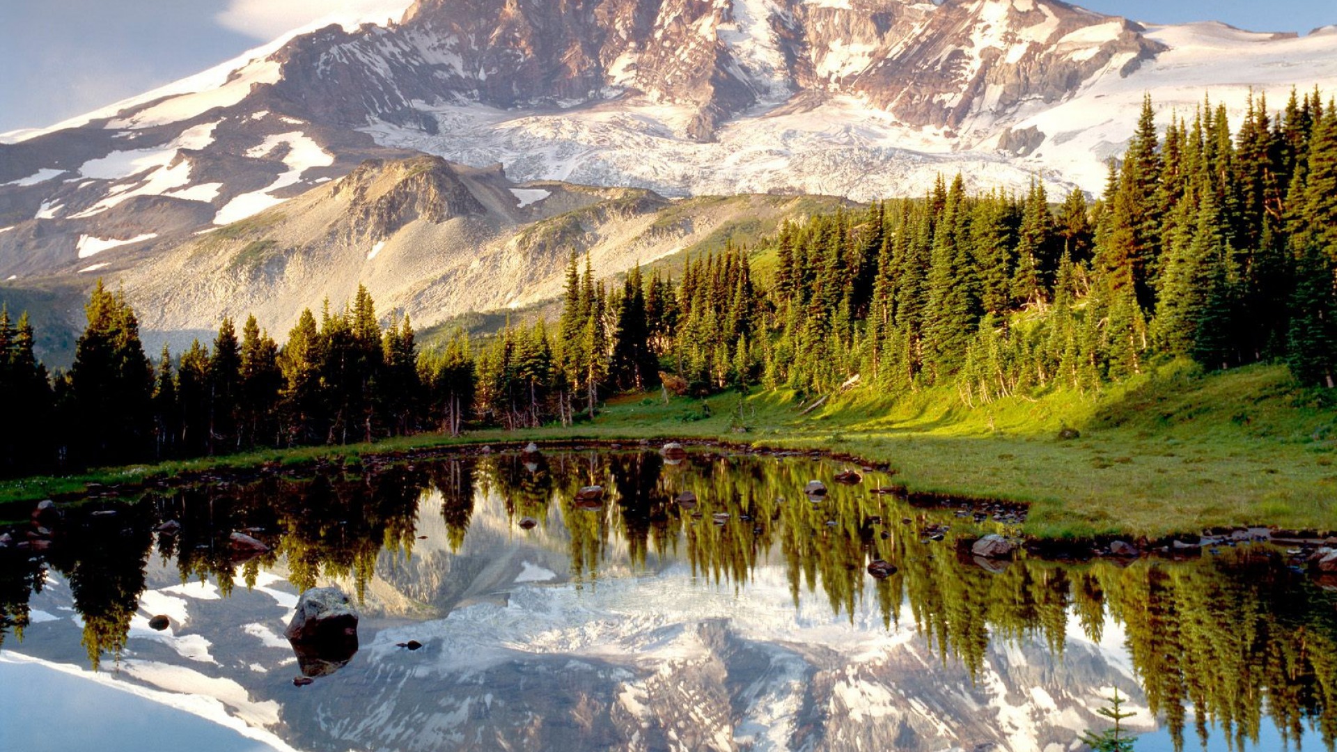 Just amazing on how beautiful everything can be on a calm day. Crystal clear water relects the image of the mountains and the tree line around the lake.