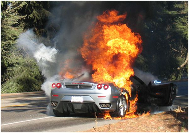 it's not a pretty picture the exotic car burns to the ground and there is nothing that you can do about it