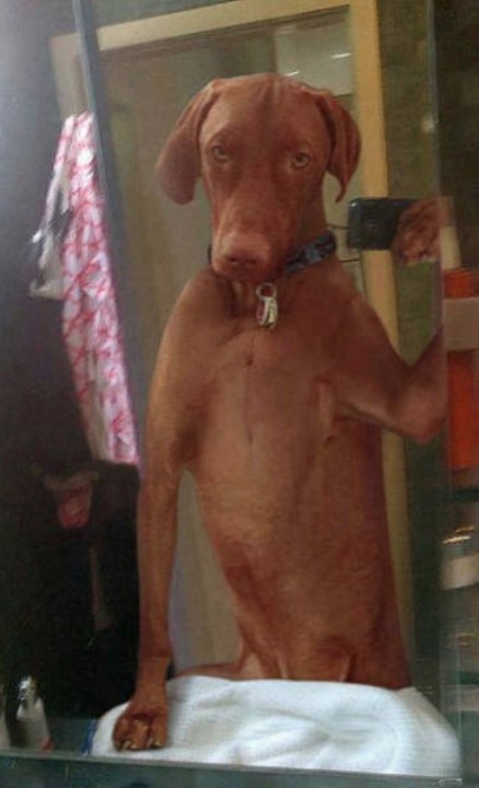 I hate when my dog takes selfies. He's such a showoff. Next thing you know he'll be flexing his muscles too. Looks like he's posing for a date.