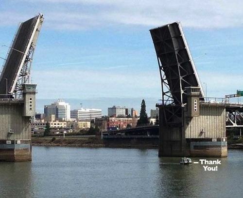 I don't think that this drawbridge necessarily had to open up to let this little boat pass through.