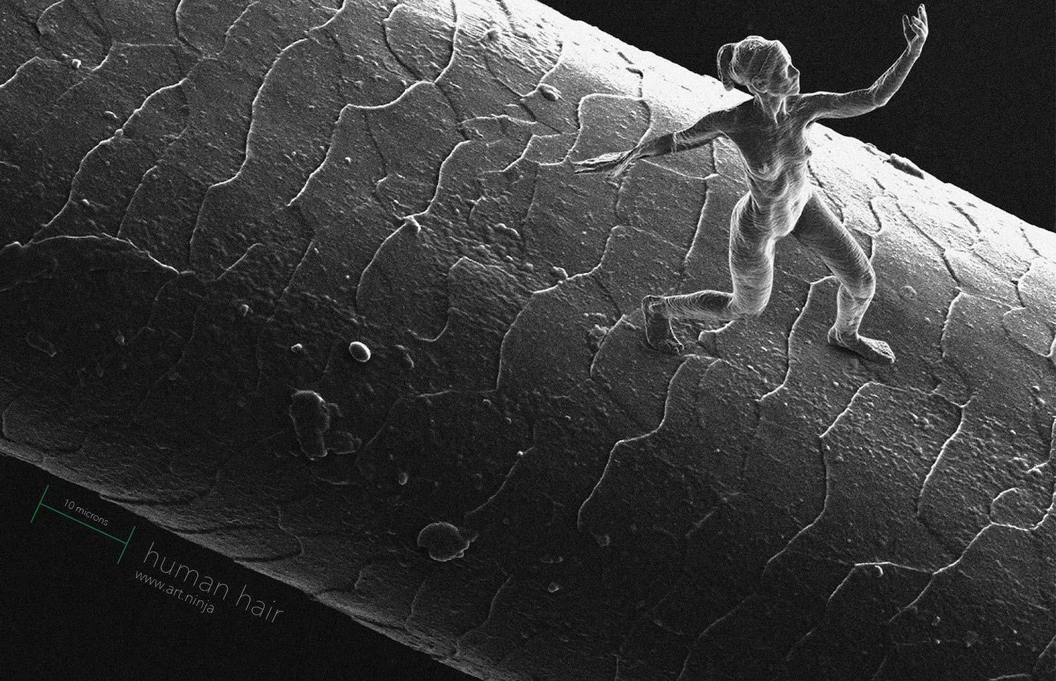 For this piece of art, you might want to get a really good magnifying glass because this is not visible to the naked eye. British artist Jonty Hurwitz has created what's possibly the smallest sculptures in the world with his “Nano” sculptures. Each sculpture is about 100 microns high or only roughly the thickness of a strand of hair and was created through a 3D printing technique called multiphoton lithography, a process that blasts microscopic pixels out of UV-sensitive polymer using a tightly focused UV light.
