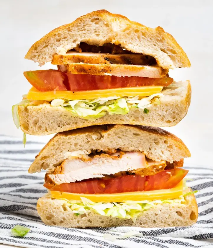4. Spread dijon mustard on bottom slice of bread. Layer lettuce and tomato on top. Add cheddar slices. Add sliced chicken. Drizzle with hot honey. Top with top slice of bread. Serve immediately or save for later.